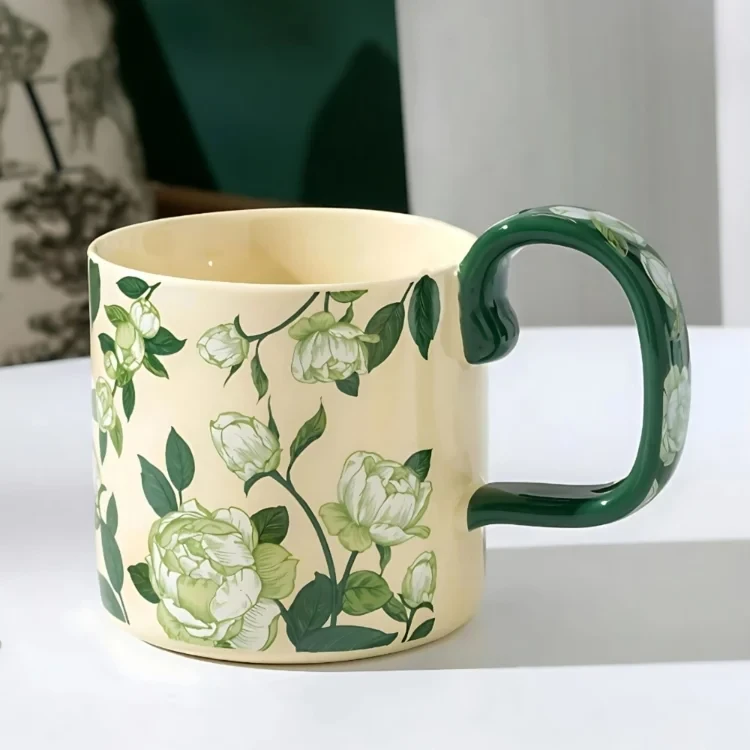 আপনার প্রতিদিনের চা বা কফি পানের মুহূর্তে শৈল্পিক ছোঁয়া যোগ করতে নিয়ে আসুন এই অসাধারণ সুন্দর ফ্লোরাল ডিজাইনের মগটি। ক্রিম রঙের সিরামিকের উপর সাদা ম্যাগনোলিয়া ফুলের দৃষ্টিনন্দন নকশা মগটিকে একটি ক্লাসিক ও মার্জিত রূপ দিয়েছে। এর প্রধান আকর্ষণ হলো ফুলের ডালের মতো করে বানানো গাঢ় সবুজ রঙের শৈল্পিক হাতলটি, যা এটিকে অন্য সব মগ থেকে আলাদা করে তুলেছে। উন্নত মানের সিরামিক দিয়ে তৈরি এই মগটি যেমন মজবুত, তেমনই সুন্দর; যা নিজের ব্যবহারের জন্য বা প্রিয়জনকে একটি রুচিশীল উপহার দেওয়ার জন্য একদম উপযুক্ত।